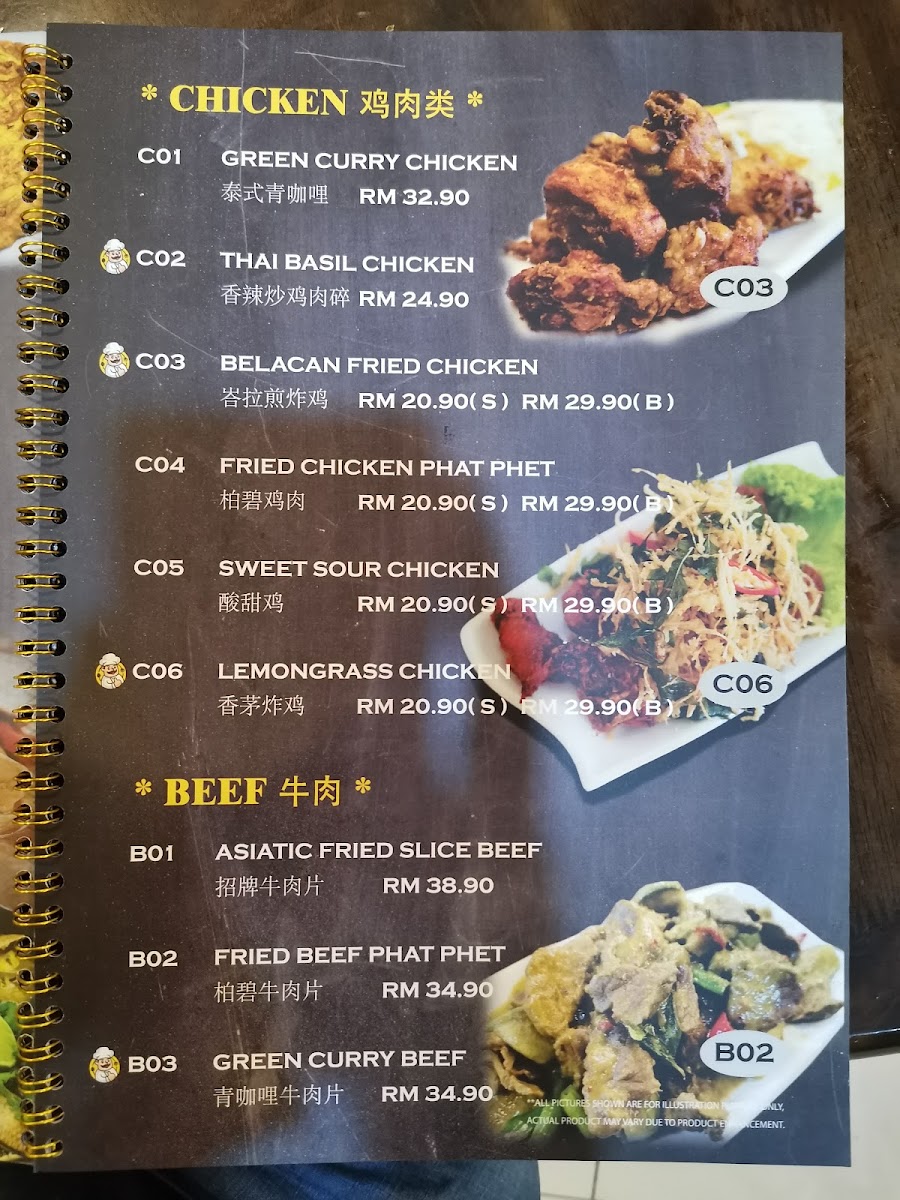 The menu at Asiatic Thai Cuisine offers a delightful array of authentic Thai dishes, blending traditional flavors with fresh ingredients. The Miangkam Fish stands out as a must-try, offering a vibrant, flavor-packed bite of fish wrapped in aromatic herbs. For those craving something spicy, the Tomyam Seafood Soup is a perfect choice, with its rich, tangy broth that beautifully balances heat and sourness. The Otak Otak is a treat for those who enjoy a combination of creamy coconut and fish, while the Lemongrass Chicken delivers a perfectly grilled, fragrant dish that's both savory and refreshing. For a taste of Thai street food, the Somtum, a spicy papaya salad, offers a wonderful crunch with just the right amount of kick. Seafood lovers will appreciate the Steam Clam with Lime, which highlights the freshness of the clams with a zesty, citrusy sauce. Pair these dishes with a side of Kangkung Fried With Sambal for a hearty, flavorful vegetable dish. To round off the meal, the Kek and Cake desserts provide a sweet and satisfying finish. If you're looking for something more exotic, the 泰国咖喱螃蟹 (Thai curry crab) is a flavorful, spicy highlight. Finally, the 蛋 offers a simple yet delicious dish, perfect for those who prefer a lighter option. With such a diverse menu, Asiatic Thai Cuisine delivers a truly authentic Thai dining experience.